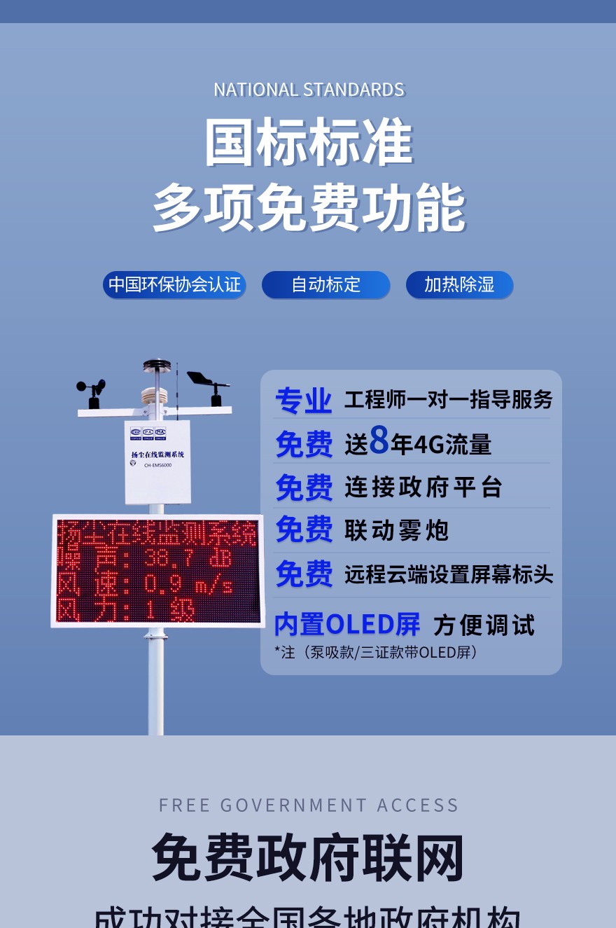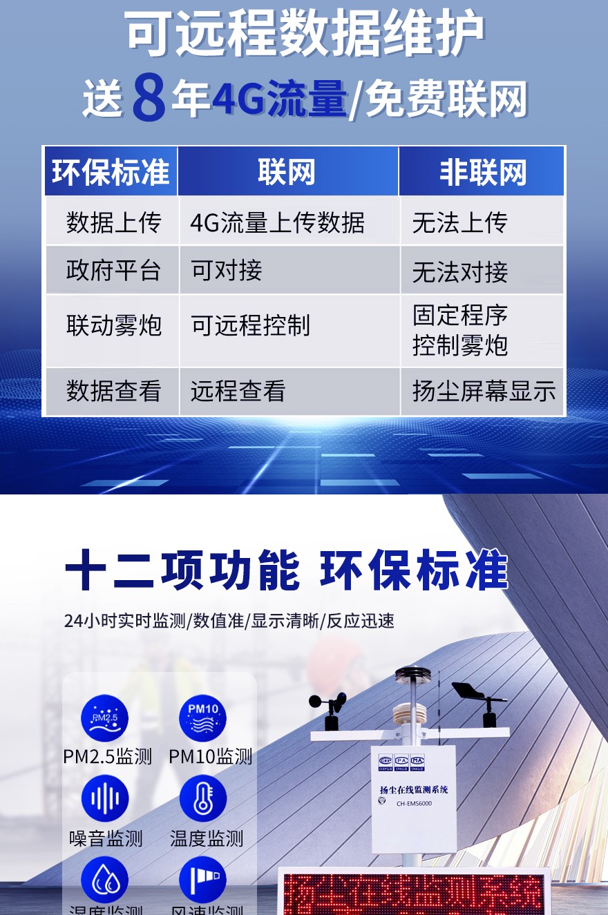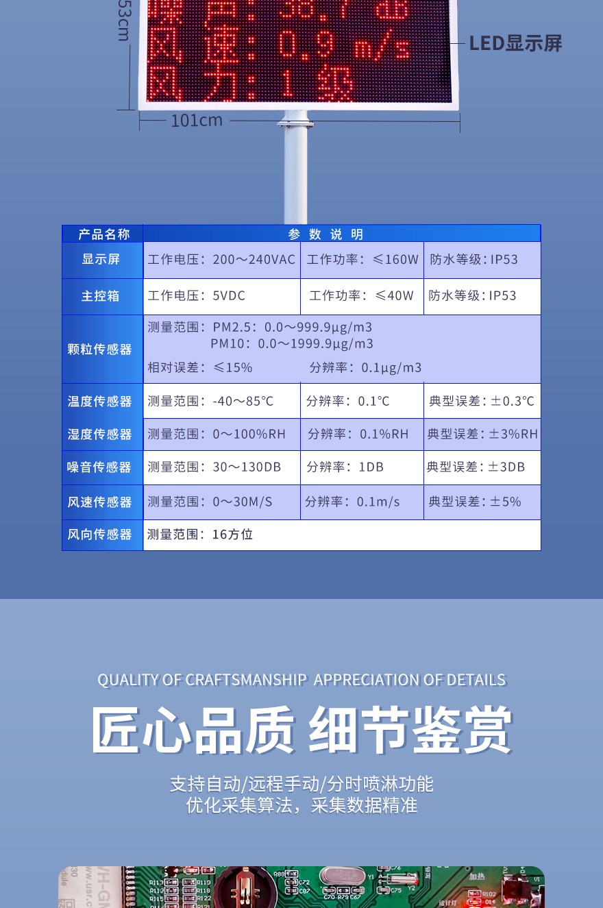 實時采集安裝環(huán)境中PM2.5、PM10、風速、風向、TSP等傳感器數(shù)據(jù),通過處理器計算出實時值、分鐘均值、小時均值、日均值等,發(fā)現(xiàn)揚塵超標時,通過有線或無線方式聯(lián)動霧炮、噴淋等設(shè)備進行降塵作業(yè),達到降低空氣污染的目的。本設(shè)備還可采集噪音、溫度、濕度、風速、風向、氣壓等環(huán)境參數(shù),并能夠通過4G無線網(wǎng)絡(luò)傳輸?shù)竭h程云平臺,實現(xiàn)遠程實時監(jiān)控、各種數(shù)據(jù)分析、統(tǒng)計等功能,實現(xiàn)工地數(shù)字化建設(shè)。